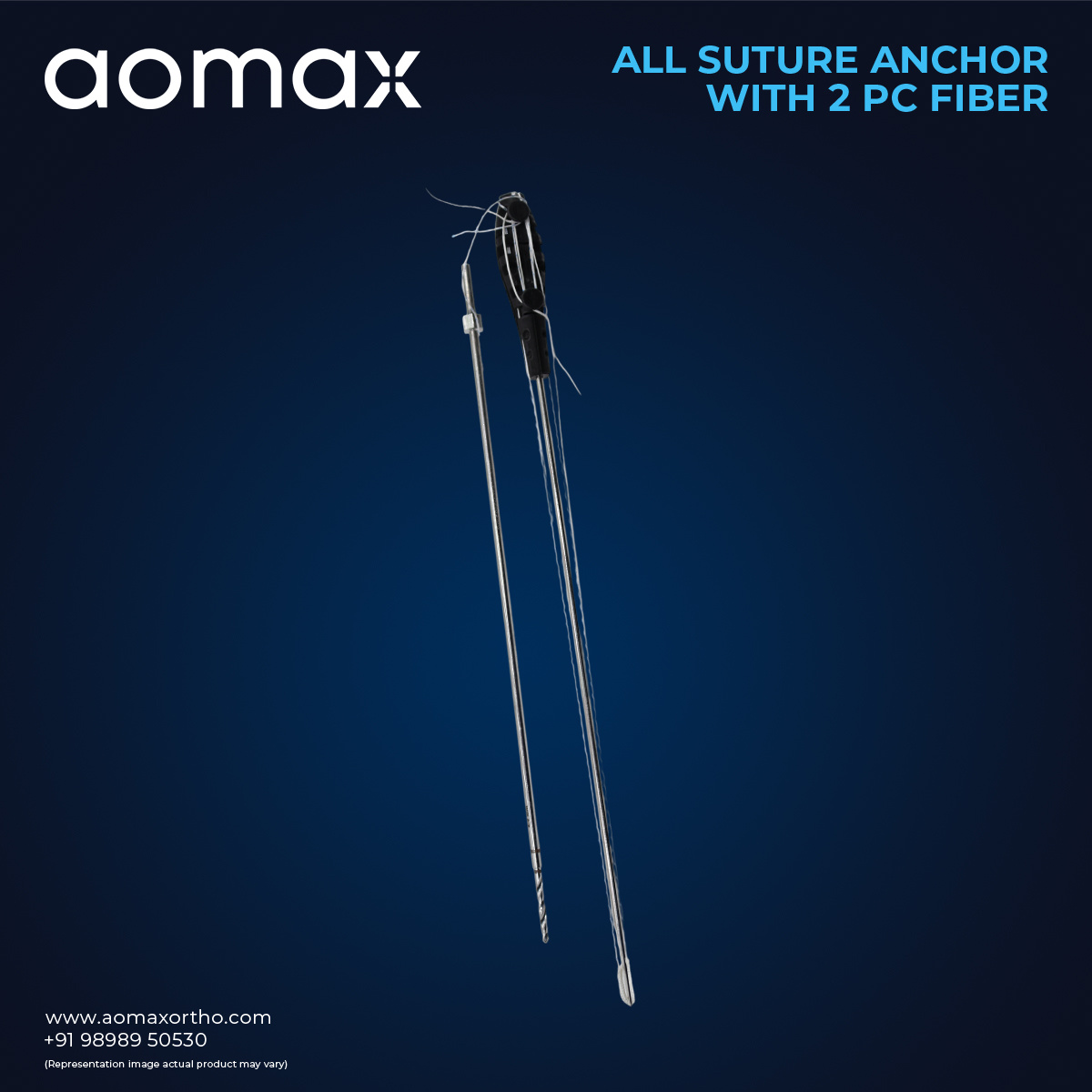 The Double Fiber Suture Anchor offers surgeons a dependable solution for soft tissue reattachment in orthopedic and sports medicine procedures. Its all-suture design allows strong fixation while preserving bone structure and supporting minimally invasive techniques. The presence of two fiber sutures enables improved load distribution and controlled tissue positioning during repair. This anchor is suitable for a wide range of tendon and ligament applications, helping enhance surgical efficiency and healing outcomes. The product is manufactured with consistent quality standards under aomax to ensure reliable clinical performance.